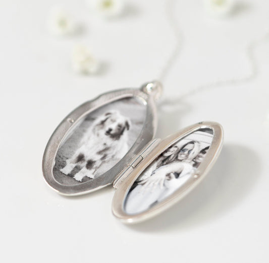 Large Oval Sterling Silver Memorial Locket holds two photographs