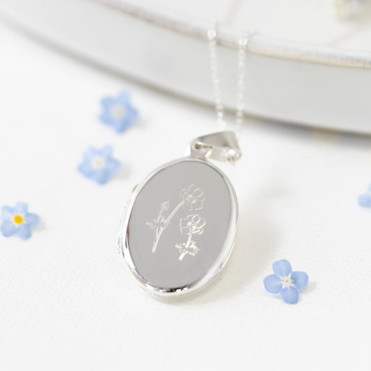 Engraved Birth flower Locket Sterling Silver